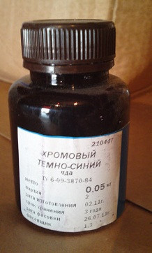 Хромовый темно-синий (кислотный хром темно-синий) — индикатор, внешне представляет собой порошок черного или темно-коричневого цвета. Легко растворяется в спирте и воде, 0,05% раствор вещества имеет вишнево-красную окраску. Комплексы с ионами кальция, цинка и магния окрашены в красный цвет, а при прямом титровании становятся сине-фиолетовыми.